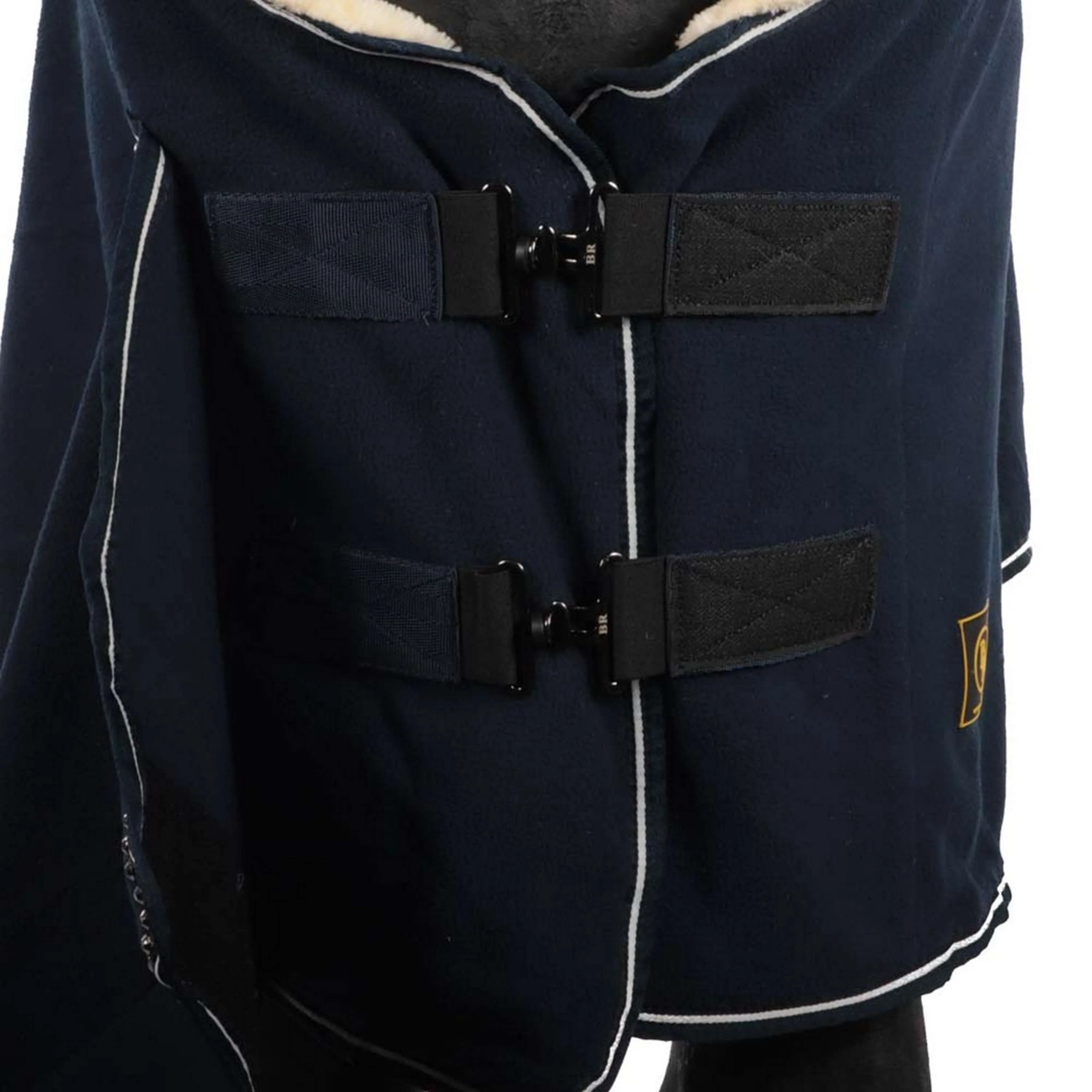 De dubbele borstsluiting met klittenbandflap zorgt ervoor dat de deken goed blijft zitten, zelfs bij beweging. Geen gedoe meer met verschuivende dekens!