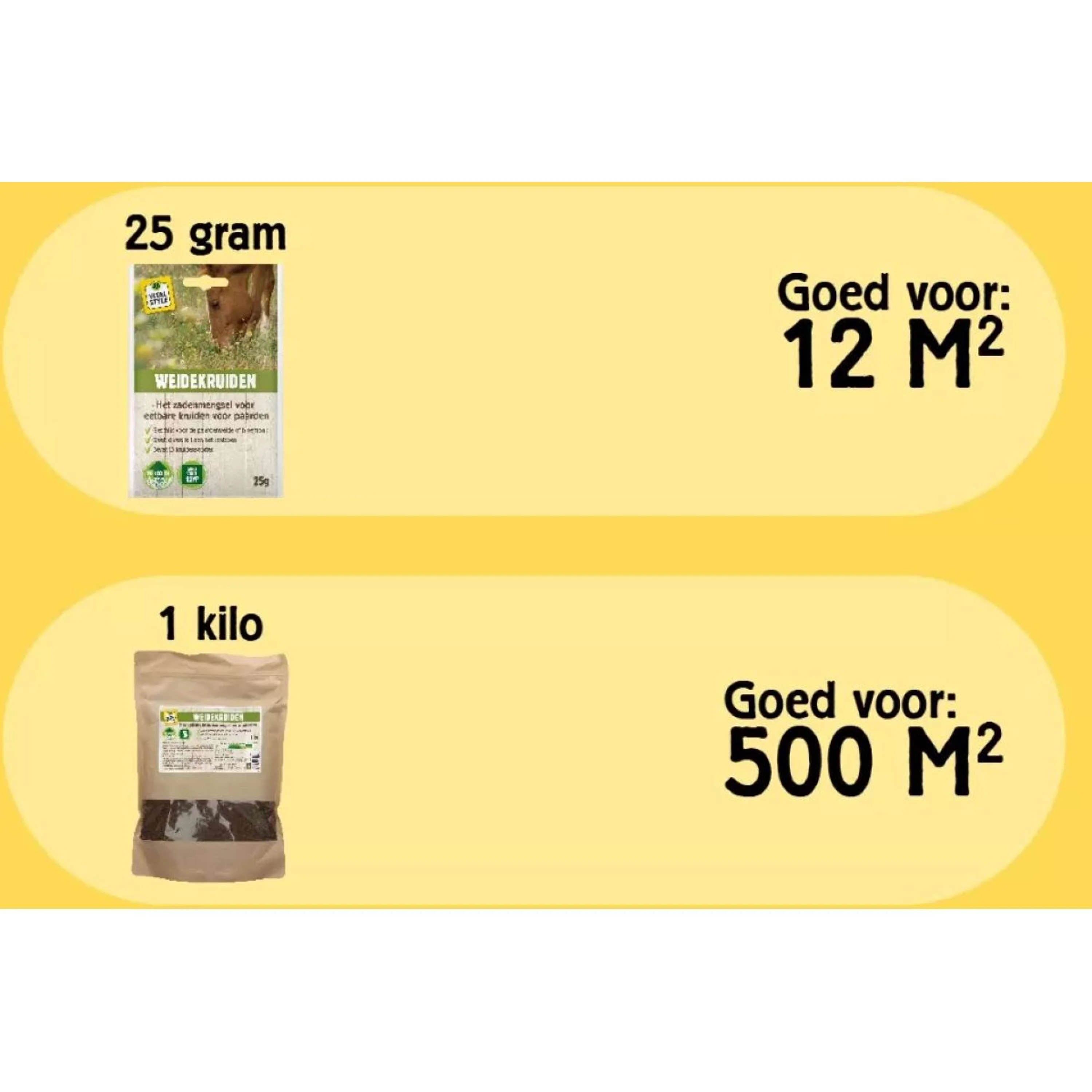 25 g WeideKruiden is goed voor 12 m2.